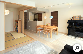 また、キッチンとダイニングをI型にレイアウトしたことで、食事の用意・片づけが楽になるとともに、リビングスペースに開放感が生まれました。