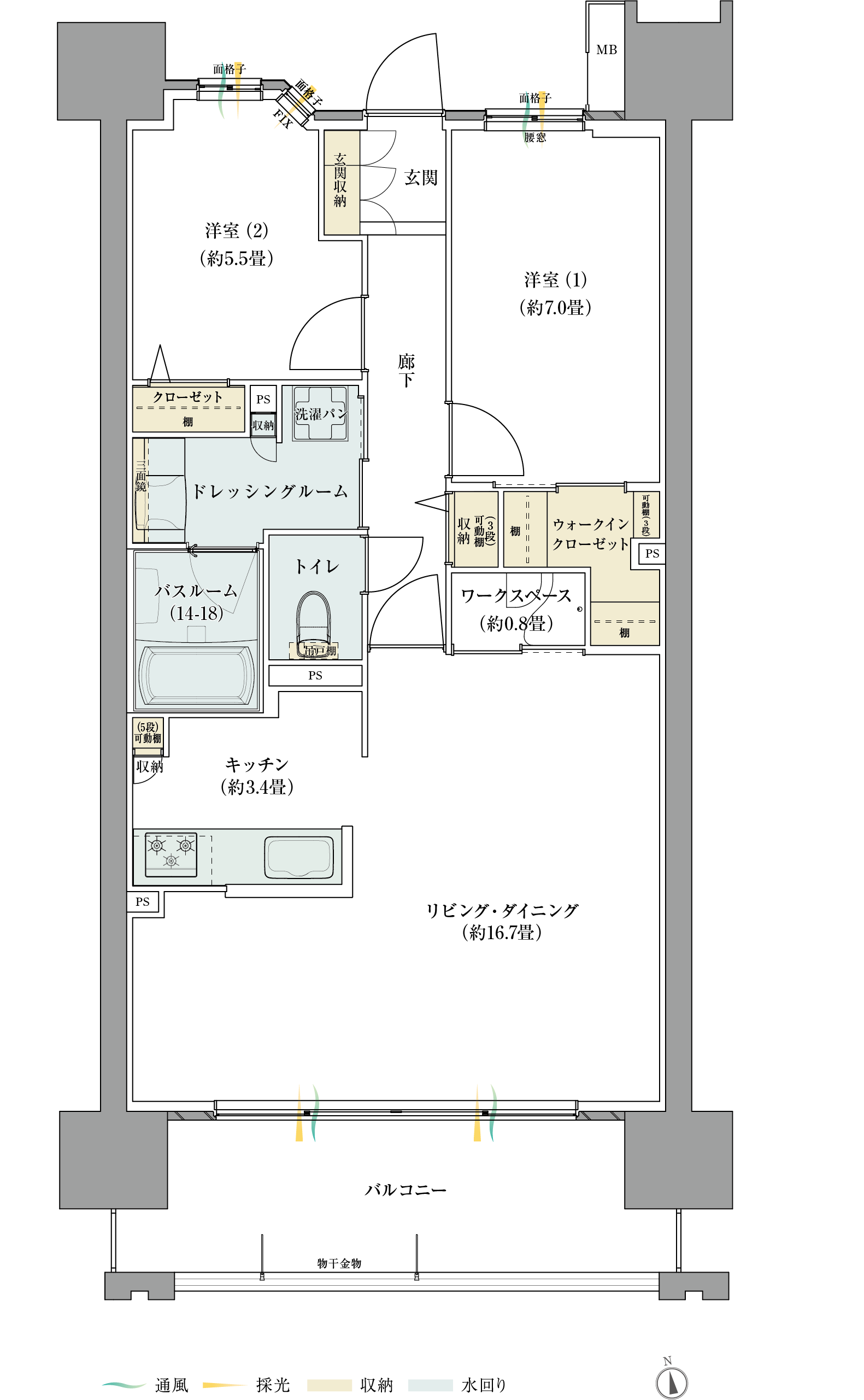 ●WIC:ウォークインクローゼット/WS:ワークスペース