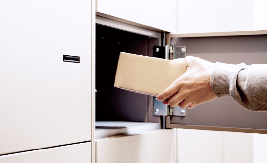 不在時は食配ボックス(3列分)を使って受け取り可能。