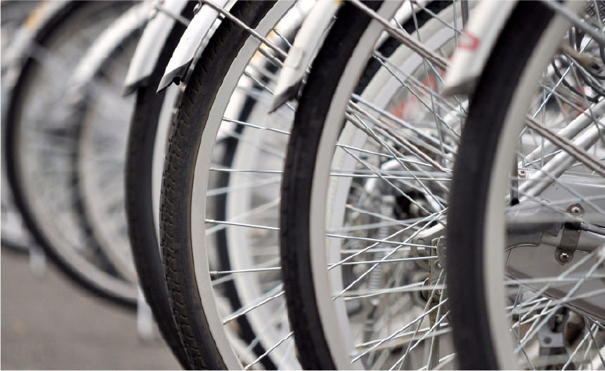 風雨に晒されない建物内に平置200台分の自転車置場、