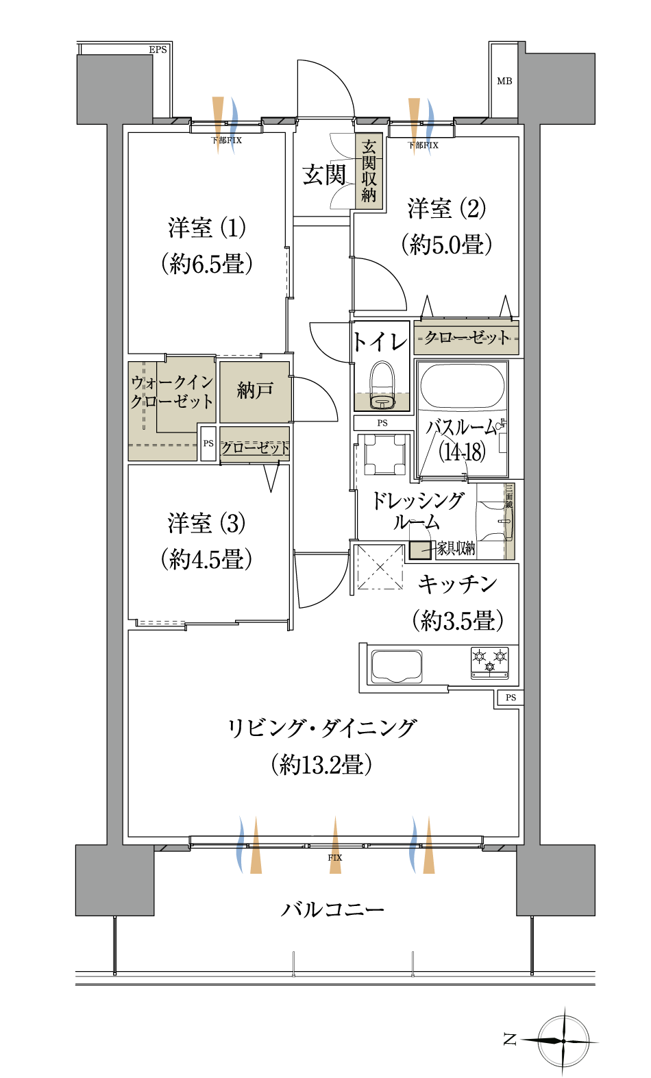 ●掲載の間取り図は、計画段階のもので今後変更となる場合があります。方位記号は若干誤差があります。正確な方位については設計図書でご確認ください。
