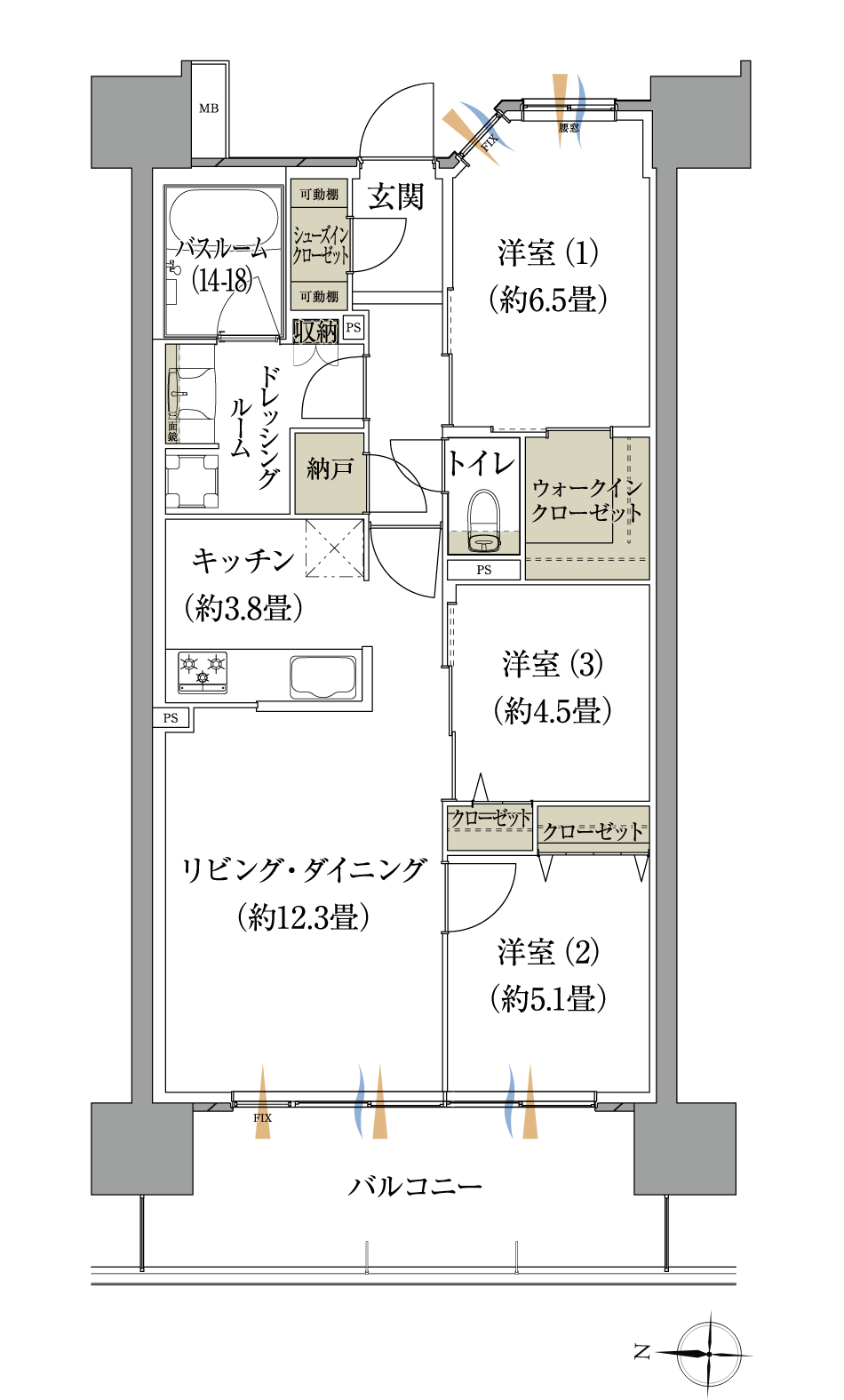 ◎多目的に使いこなせる、3つの洋室。