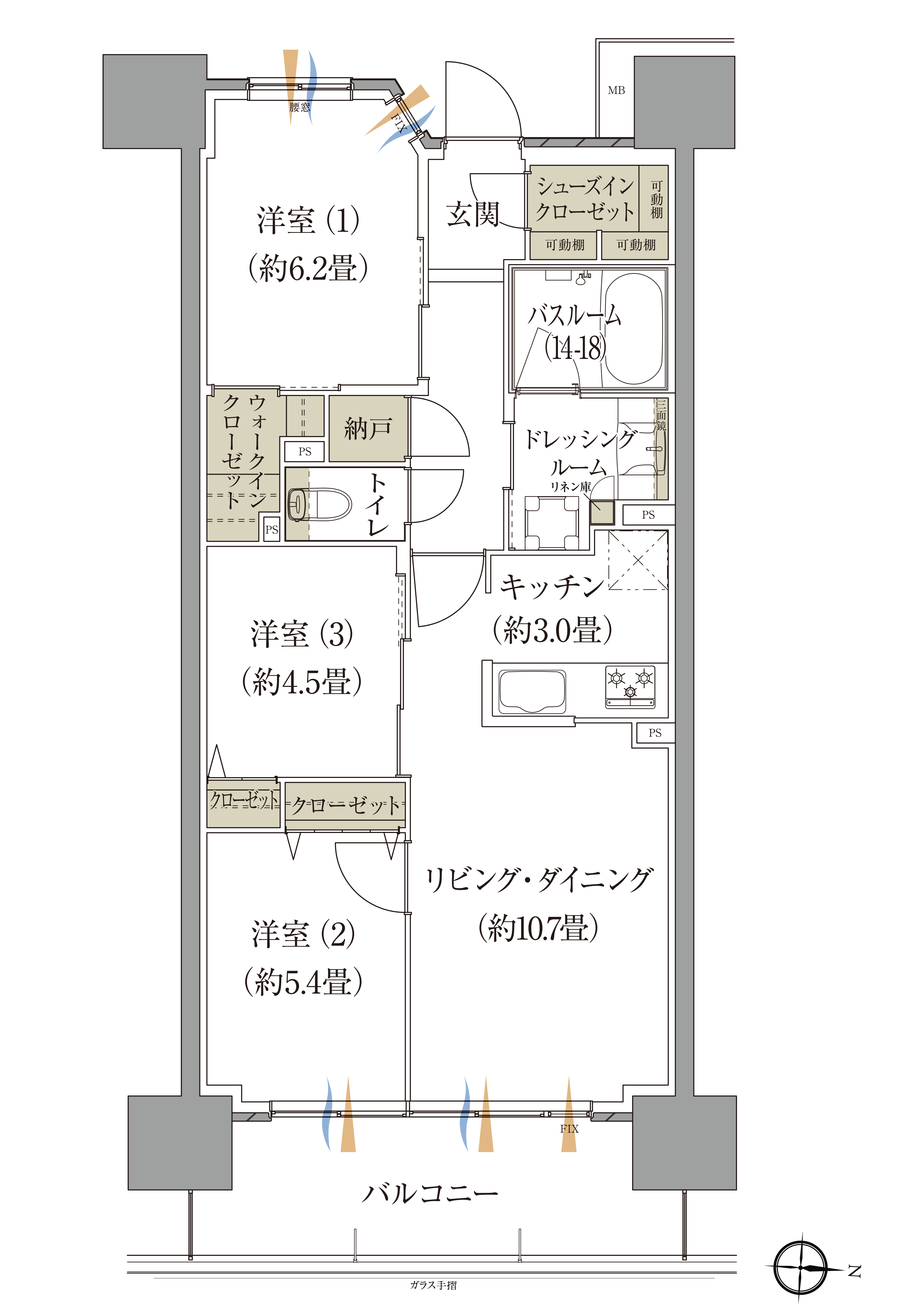 ●掲載の間取り図は、計画段階のもので今後変更となる場合があります。方位記号は若干誤差があります。正確な方位については設計図書でご確認ください。