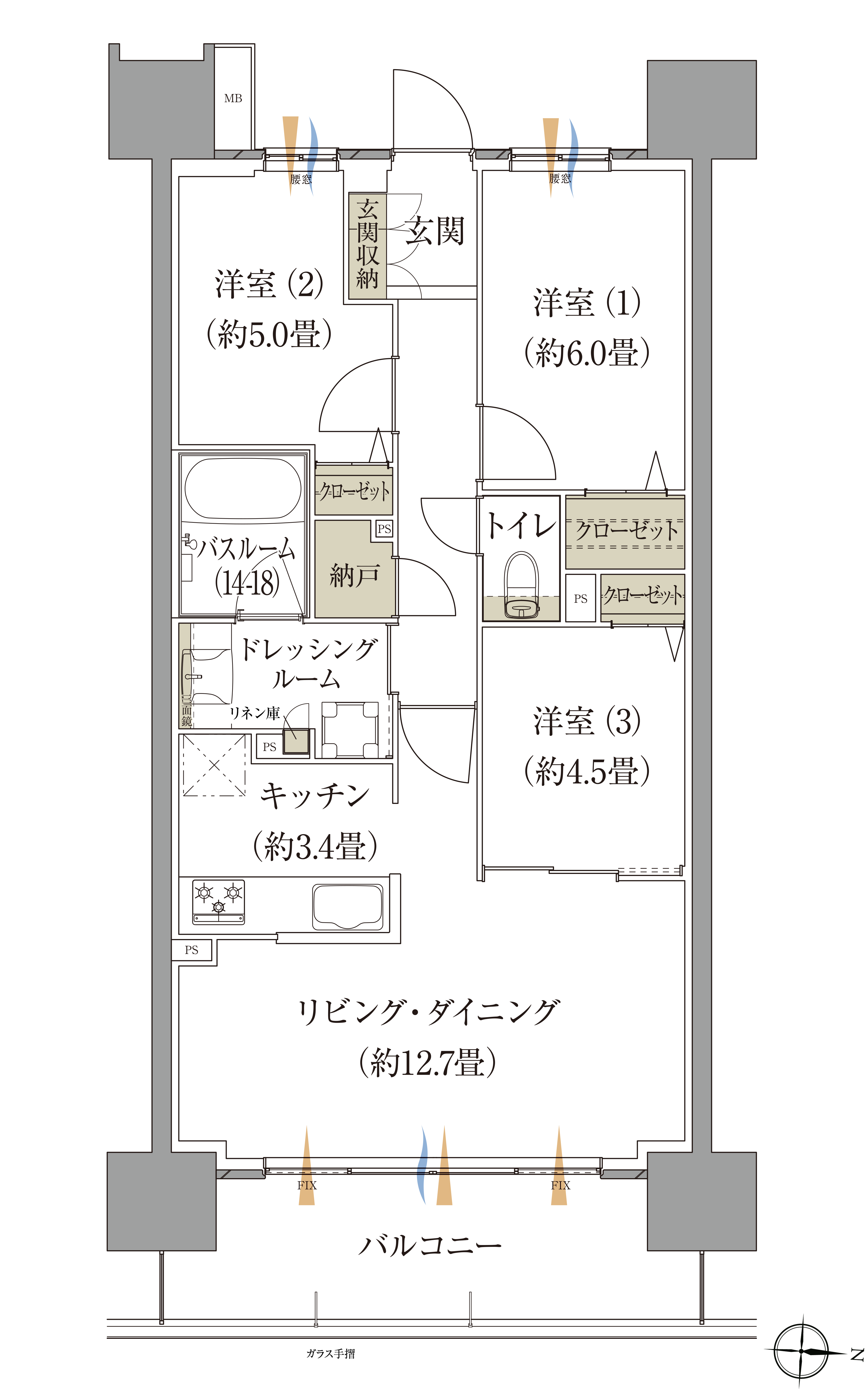◎開放感あふれる、約12.7畳ワイドリビングプラン。