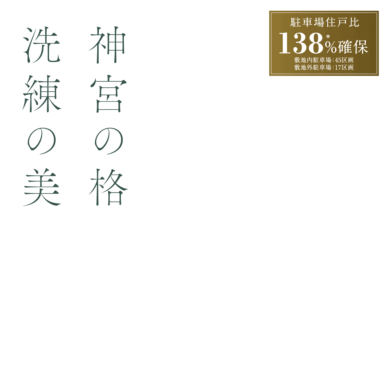 ●敷地内区画:総45区画(屋外普通 42区画・屋外縦列 2区画・屋外軽 1区画)44戸分、敷地外区画:17区画(敷地外普通13区画・敷地外小型2区画・敷地外軽2区画)