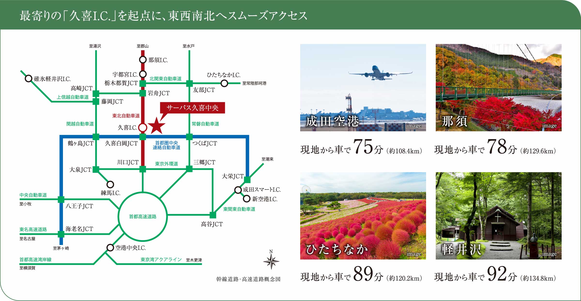 ●車の乗車所要時間は渋滞などの道路状況により前後します。