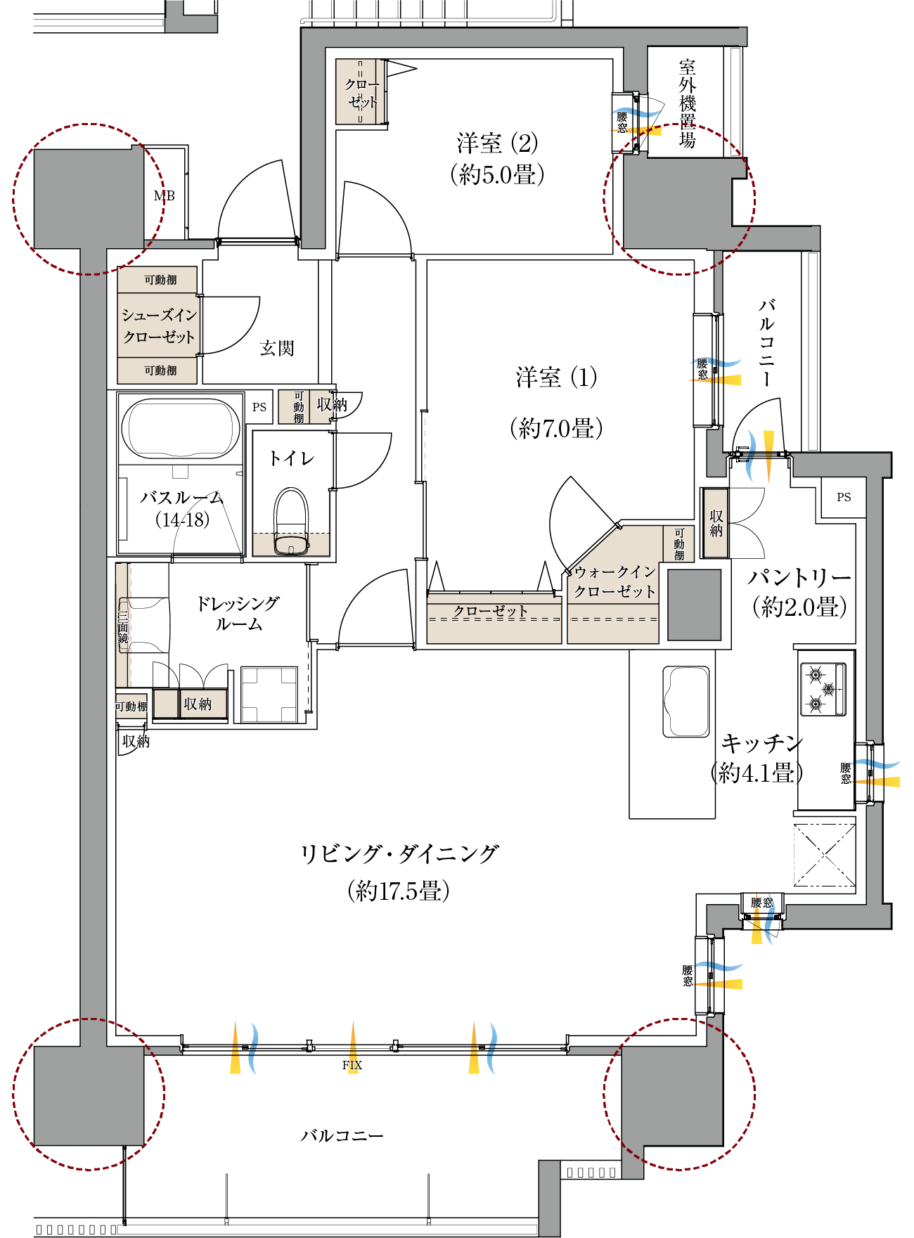 ●掲載の間取り図面・設備仕様は開発段階のもので、設計・施工上の都合により変更する場合があります。