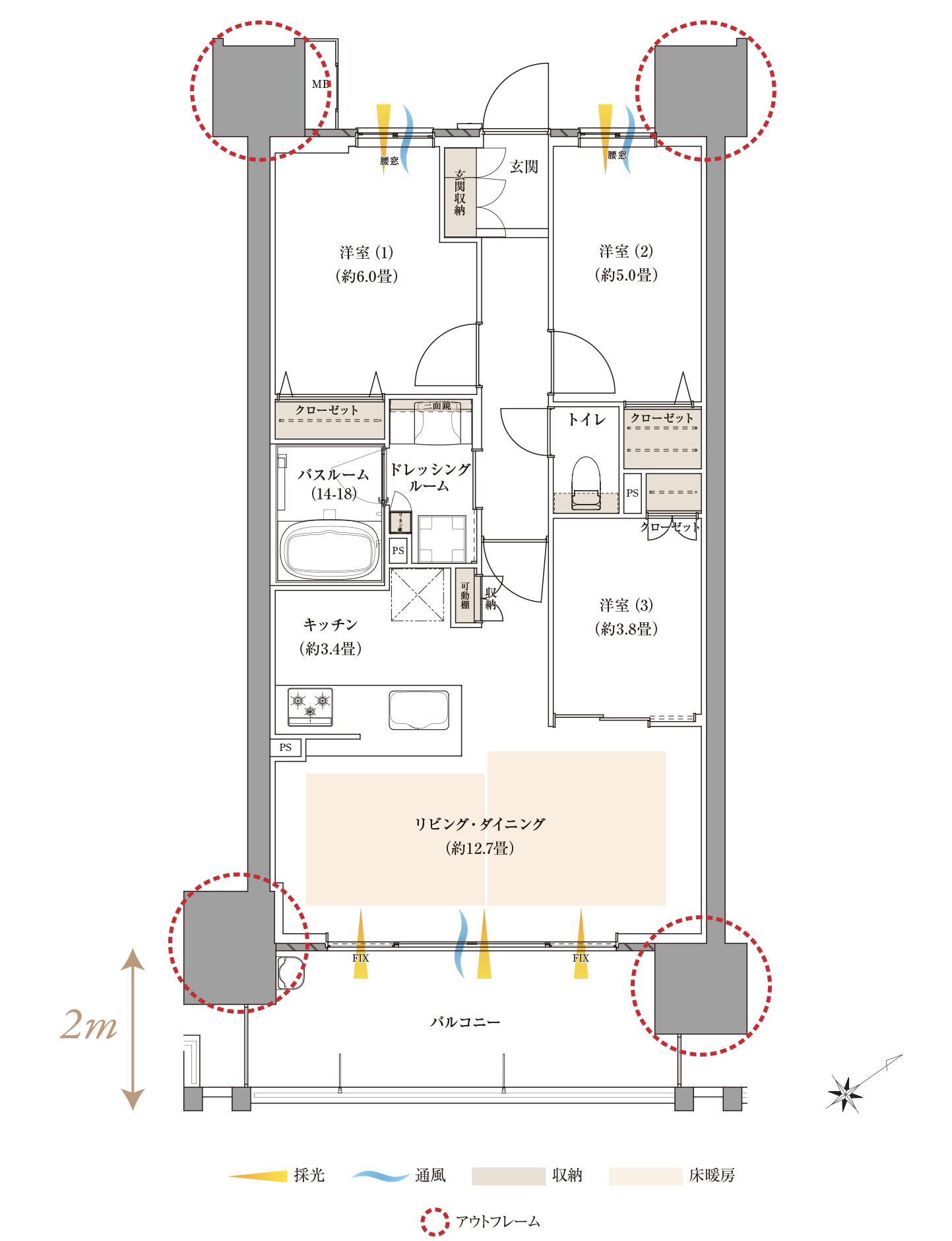 ●方位記号は若干誤差があります。正確な方位については設計図書でご確認ください。