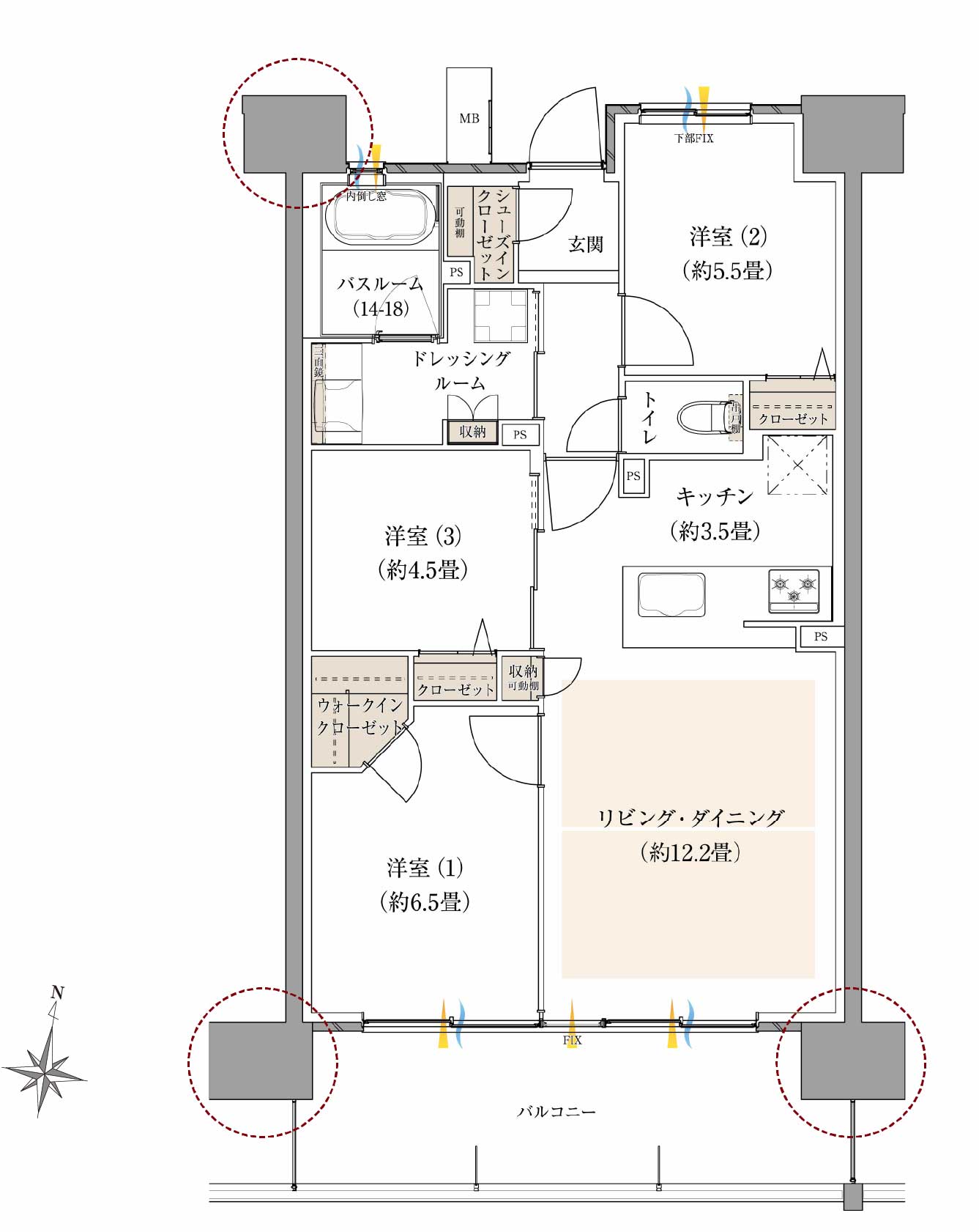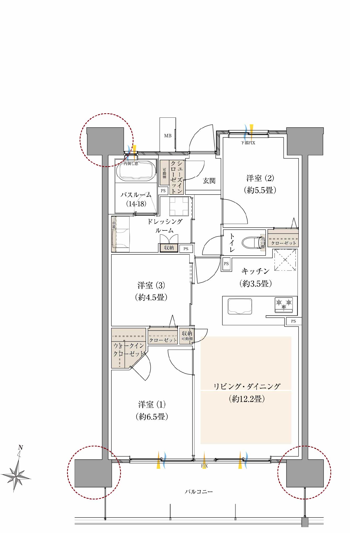 群馬県前橋市の新築・分譲マンション「ザ・サーパス前橋駅前」のE1タイプ