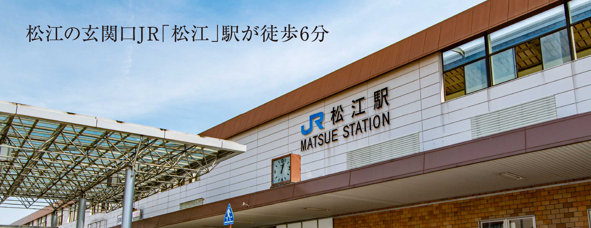 バスや電車など、公共交通の起点となるJR「松江」駅まで徒歩6分(約470m) 。毎日の通勤や通学もストレスなくご利用いただけます、また旅行や出張などのお出かけも、フットワークがいっそう軽くなります。