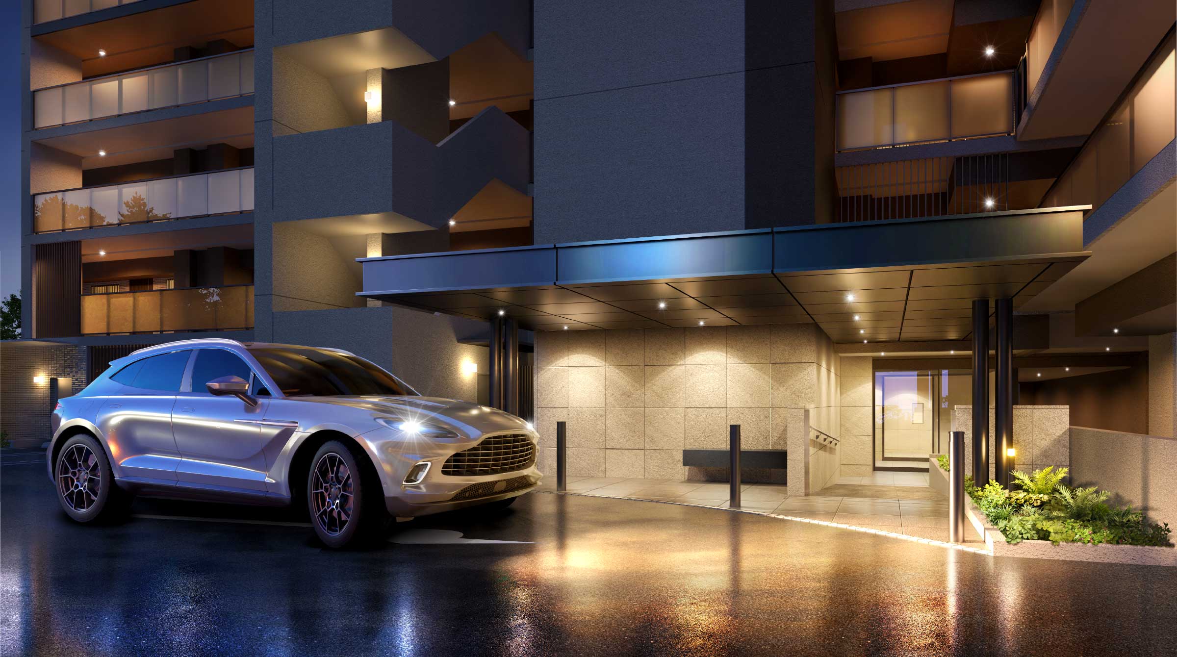 また、ホテルライクな車寄せが、