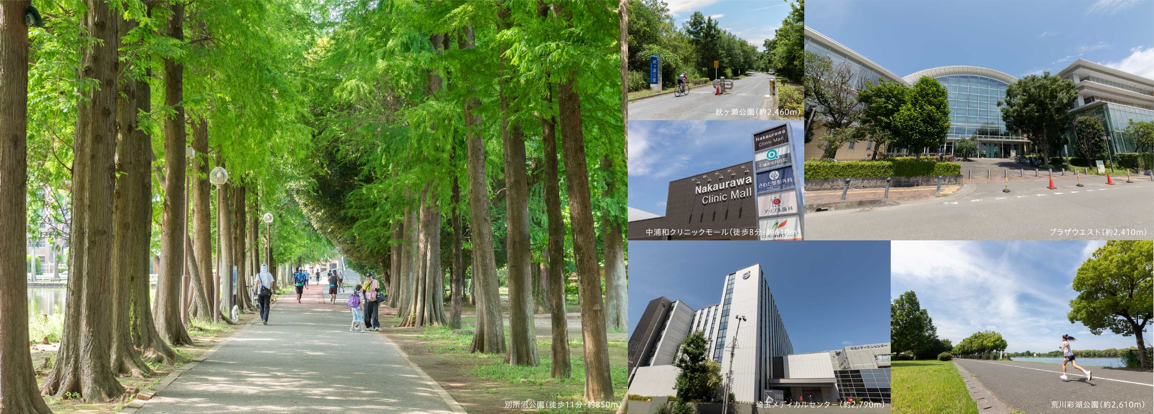●JR埼京線「中浦和」駅(徒歩8分・約600m)、さいたま市営別所沼公園(徒歩11分・約850m)、「浦和」駅(約2,540m)、「武蔵浦和」駅(約1,900m)