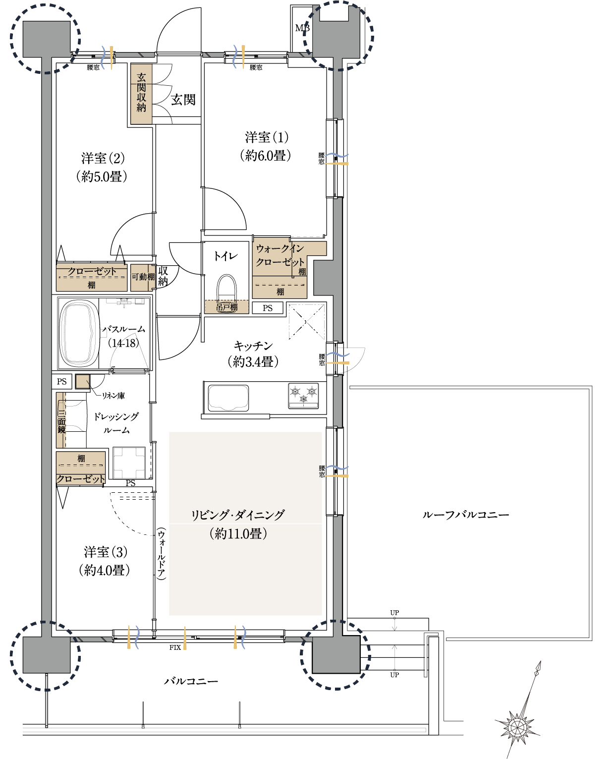 ●方位記号は若干誤差があります。正確な方位については設計図書でご確認ください。