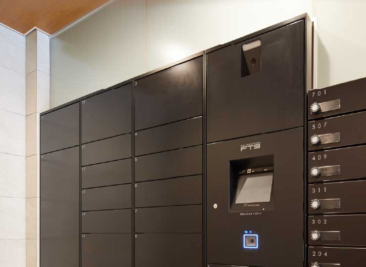 外出中でも荷物を受け取れる宅配ボックスを設置。顔認証対応のため、キーを使わず荷物を安心して受け取れます。