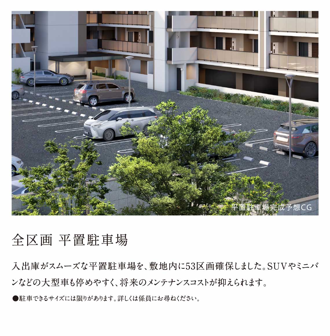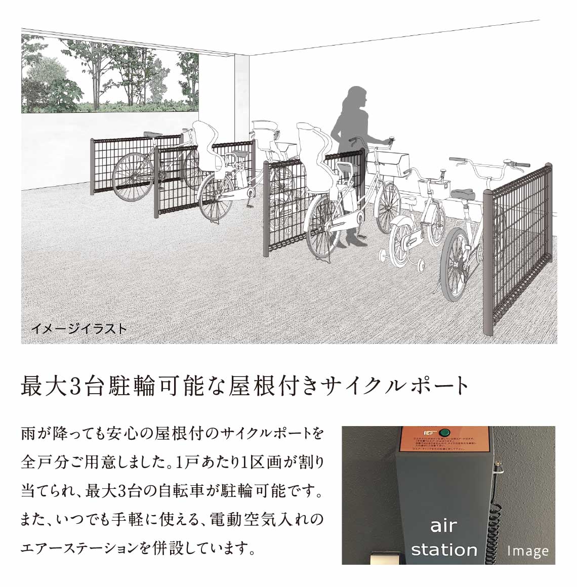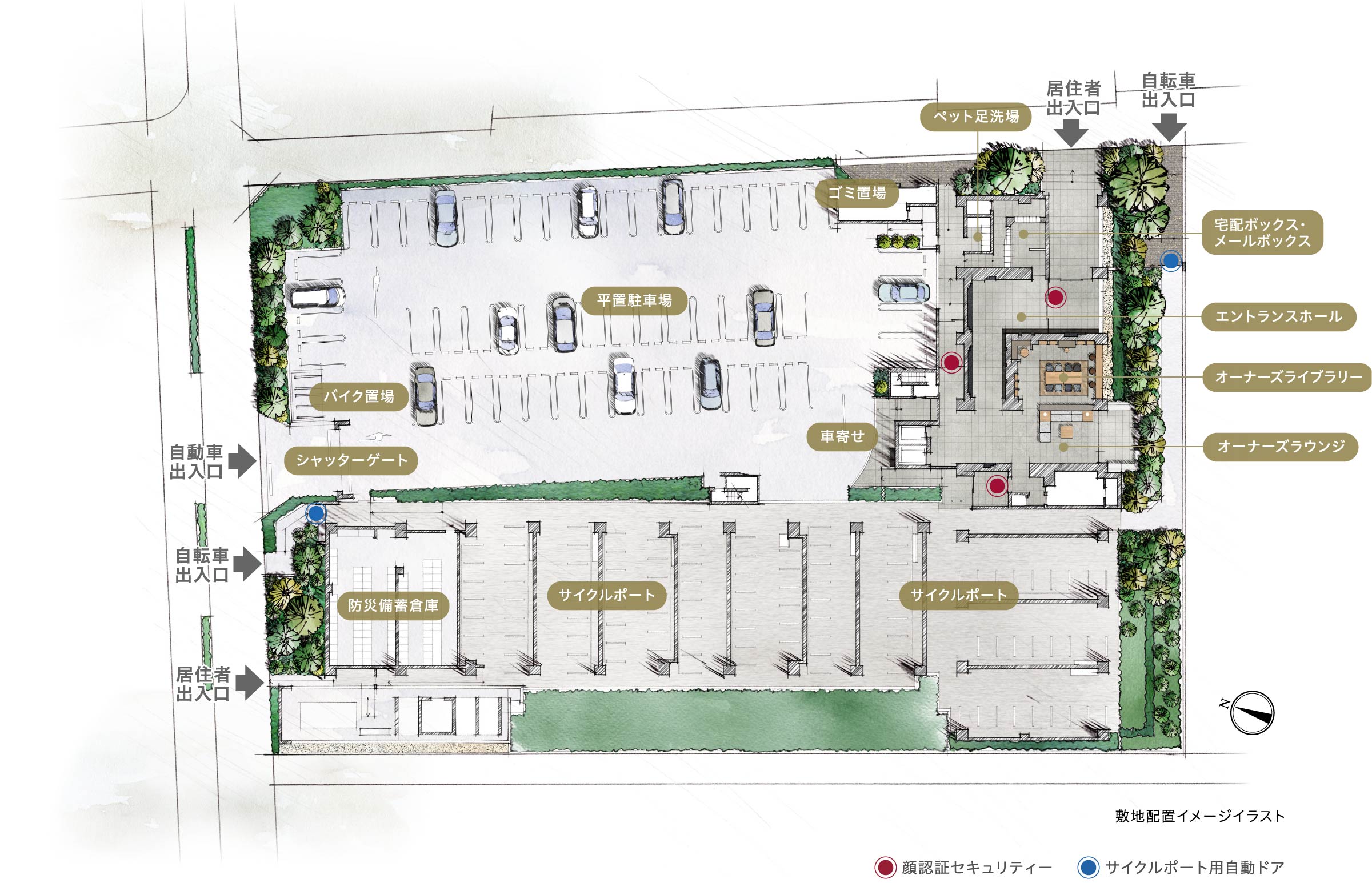 駐車場出入口には独立性と防犯性を高めるシャッターゲートを設置。開閉はリモコンで遠隔操作が可能。便利で快適なカーライフをサポートします。