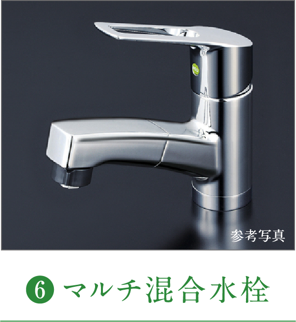 洗面化粧台の蛇口には、吐水口が引き出せる水栓を設置しています。節湯のできる水栓です。