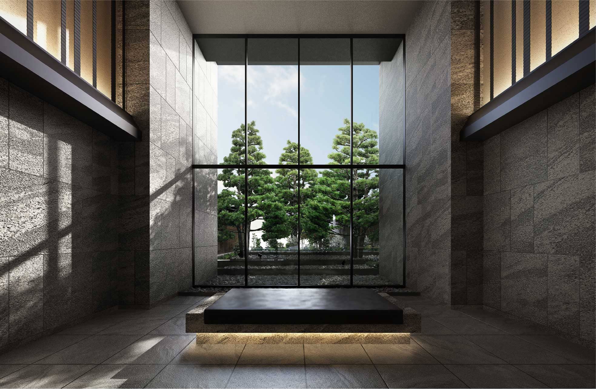 ● 掲載の外観完成予想CG、エントランス外観完成予想CG、エントランスホール完成予想CG、アプローチ完成予想CG、および庭園完成予想CGは、計画段階の図面を基に描き起こしたもので、実際とは異なる場合があります。