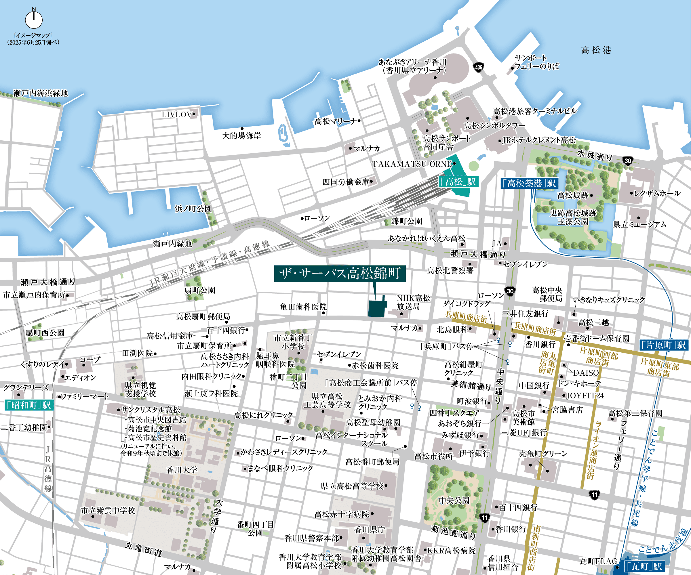 (高松空港リムジンバスのりば) - 徒歩8分(約580m)