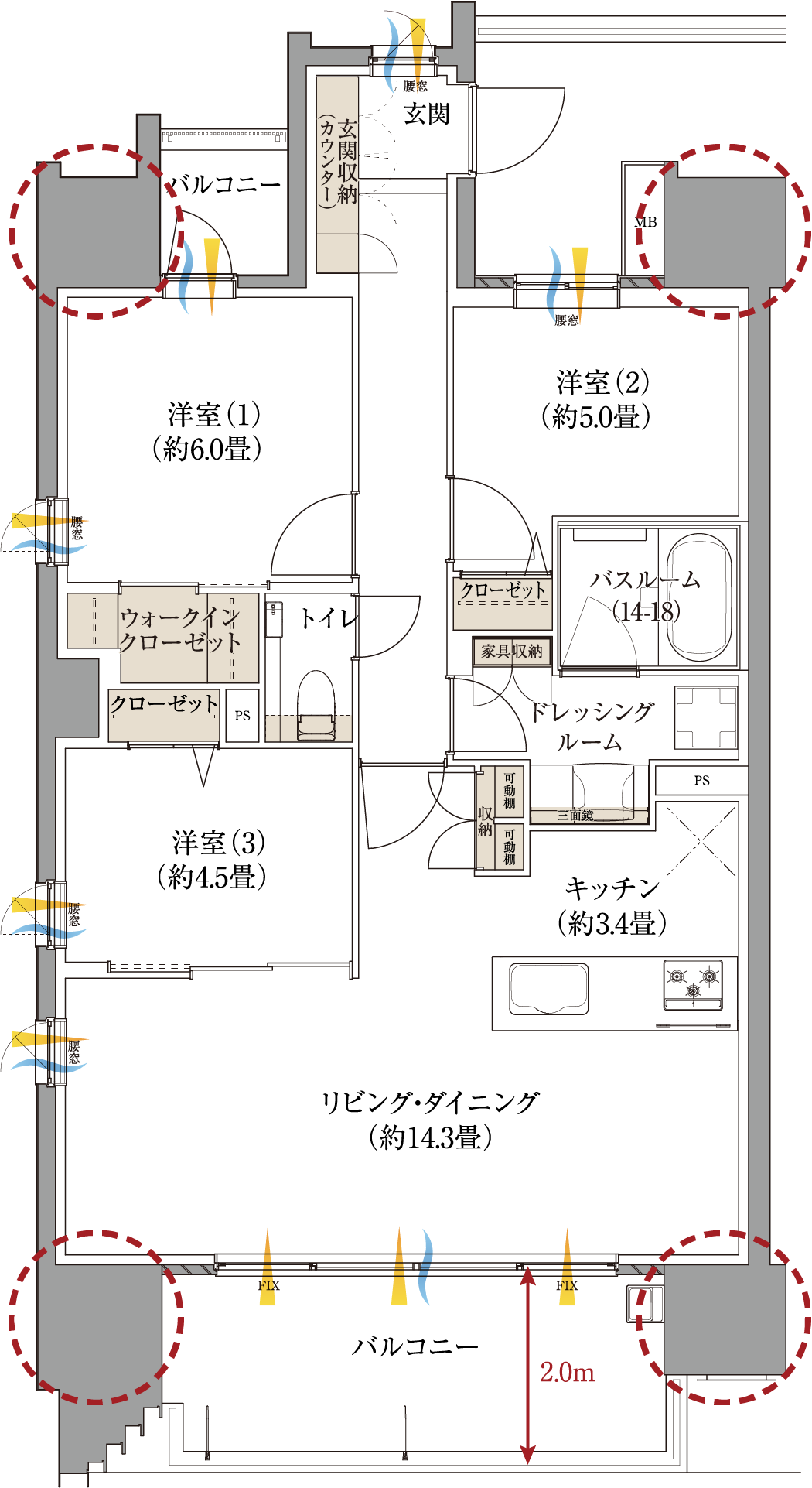 ●掲載の間取り図面・設備仕様は開発段階のもので、設計・施工上の都合により変更する場合があります。