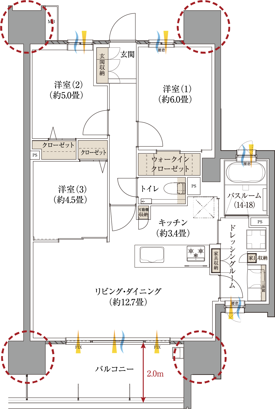 光と風を採り入れる、明るく開放的な南東向き角住戸プラン