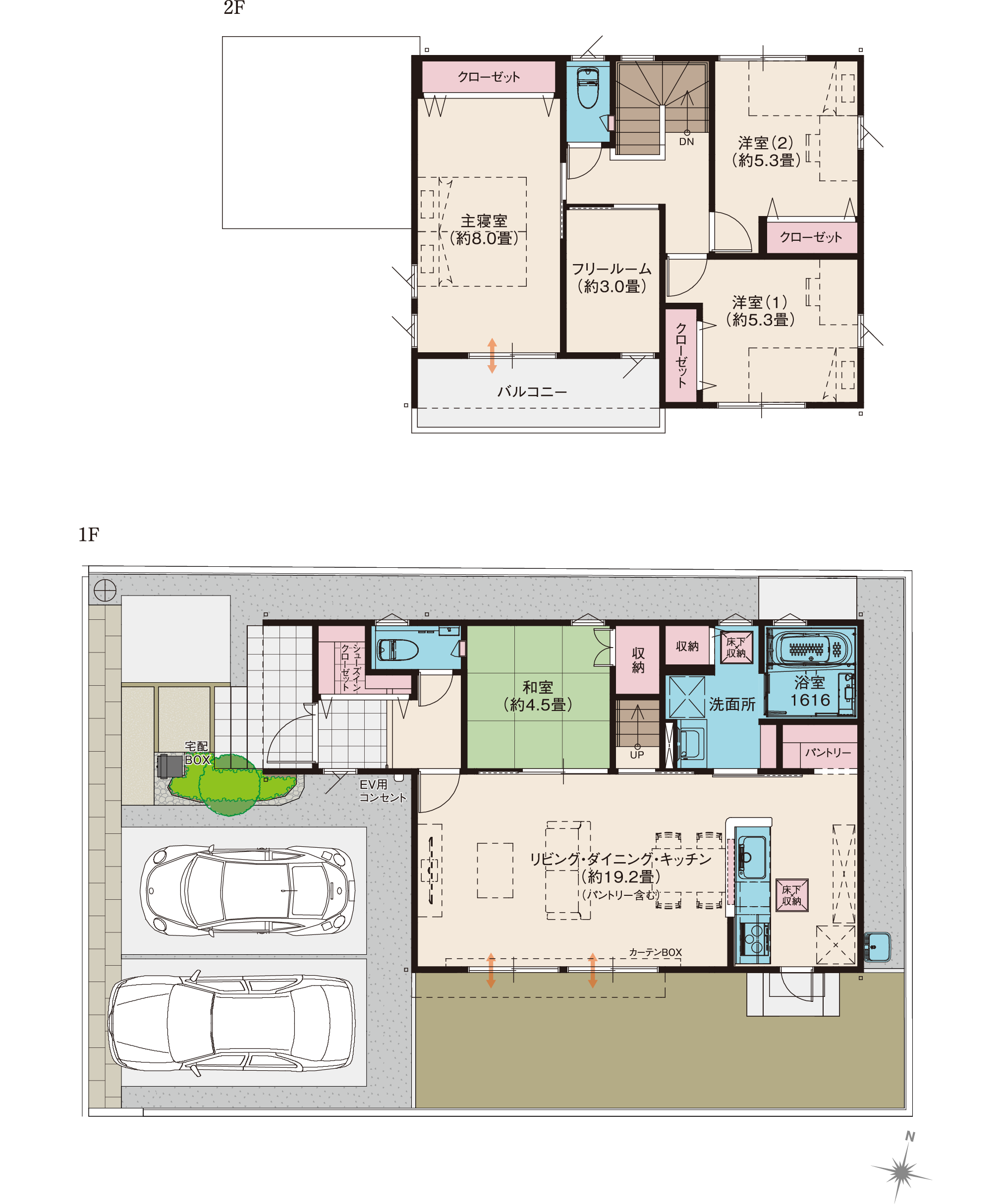●外構の石やタイルなどは、おおよその施工範囲を示したものです。