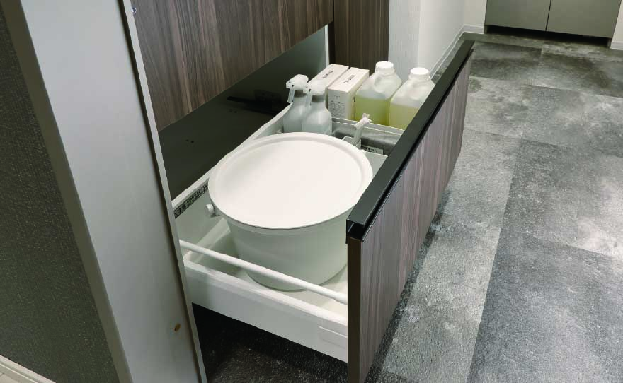 ボウル下のスペースをスライド収納に。